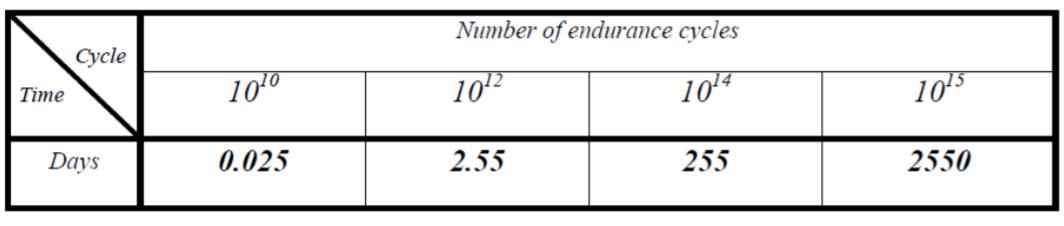 內(nèi)存耐久度指定為存儲單元可以寫入或擦除的次數(shù)。對于盡管嚴格和廣泛使用仍需要高數(shù)據(jù)完整性的應用程序,內(nèi)存耐用性是關鍵的系統(tǒng)性能特征和設計考慮因素之一。鐵電RAM或FRAM是一種快速,非易失性和低功耗的存儲器,與其他基于浮柵或相變技術的非易失性存儲器相比,它具有高耐用性是其主要優(yōu)勢之一。FRAM的“耐力”定義為疲勞后的記憶狀態(tài)保持能力,或在許多開關周期后維持鐵電開關電荷的非易失性部分的能力。