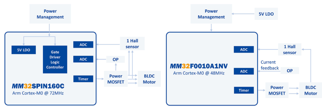 在單相控制上也可以選用MM32F0010A1NV來(lái)達(dá)到更好的BOM cost。