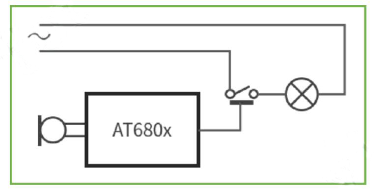 AT6802ABR1在智能聲控?zé)艟邎?chǎng)景的工作示意圖