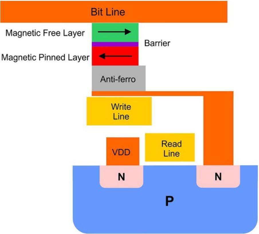 •具有成本效益----簡單到只有一個晶體管、一個磁性穿隧結(1T-1MTJ)位單元;