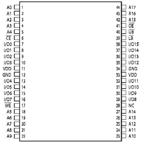 芯片使能輸入CE和輸出使能輸入OE可方便實(shí)現(xiàn)存儲器的擴(kuò)展。低電平有效的寫使能( WE )控制著存儲器的寫和讀操作。高字節(jié)(UB)和低字節(jié)(LB )控制信號控制著對數(shù)據(jù)字節(jié)的訪問。