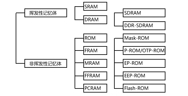 SRAM、DRAM、SDRAM、DDR-SDRAM 等。